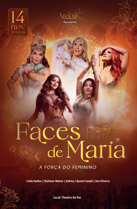 Prepare-se para uma noite inesquecível de dança e emoção!! O Arabik Studio de danças árabes tem o prazer de apresentar “FACES DE MARIA”, nosso 3º espetáculo anual, que celebra a força, a resiliência, a potência e a beleza do feminino. ✨