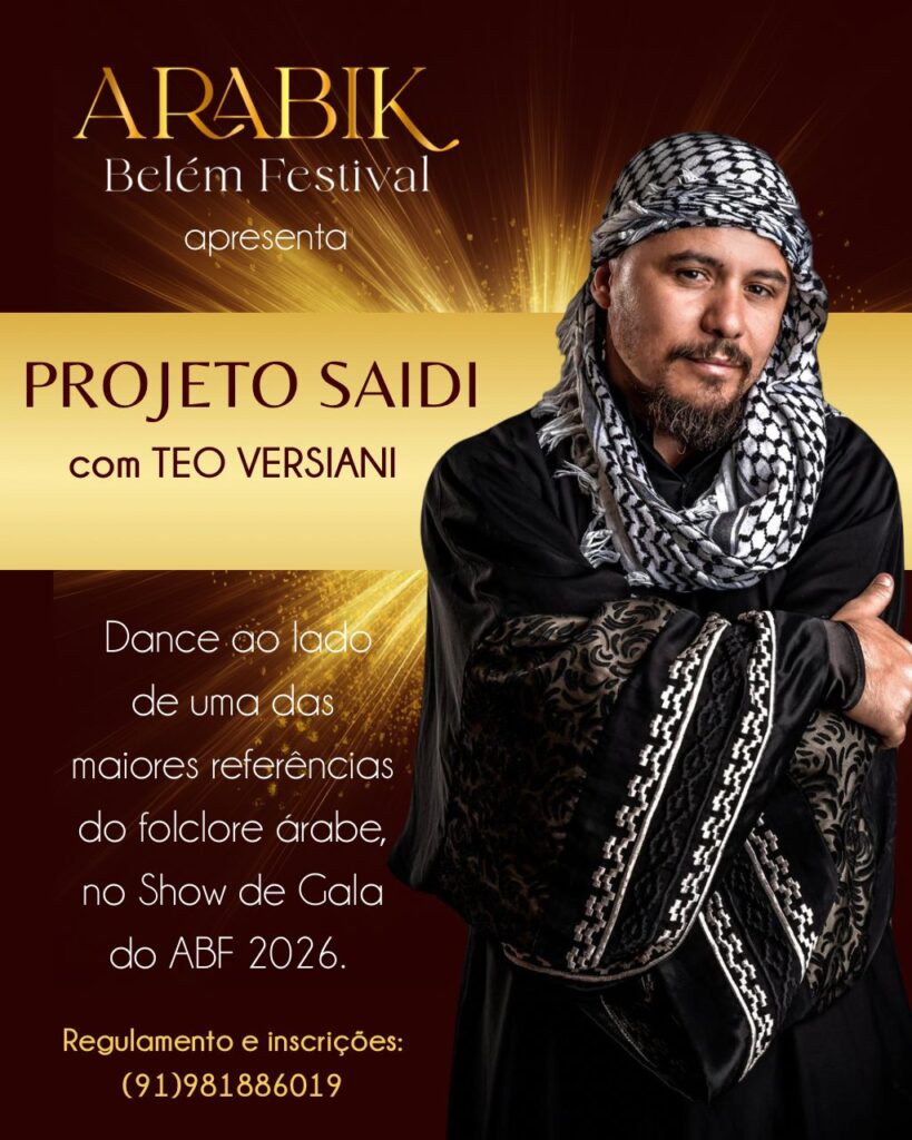 No dia 04 de julho de 2026, participe das mostras e competições do Arabik Belém Festival! Venha apresentar seu talento, em solos, duplas ou em grupo, e tenha a chance de ser avaliado por jurados especializados.